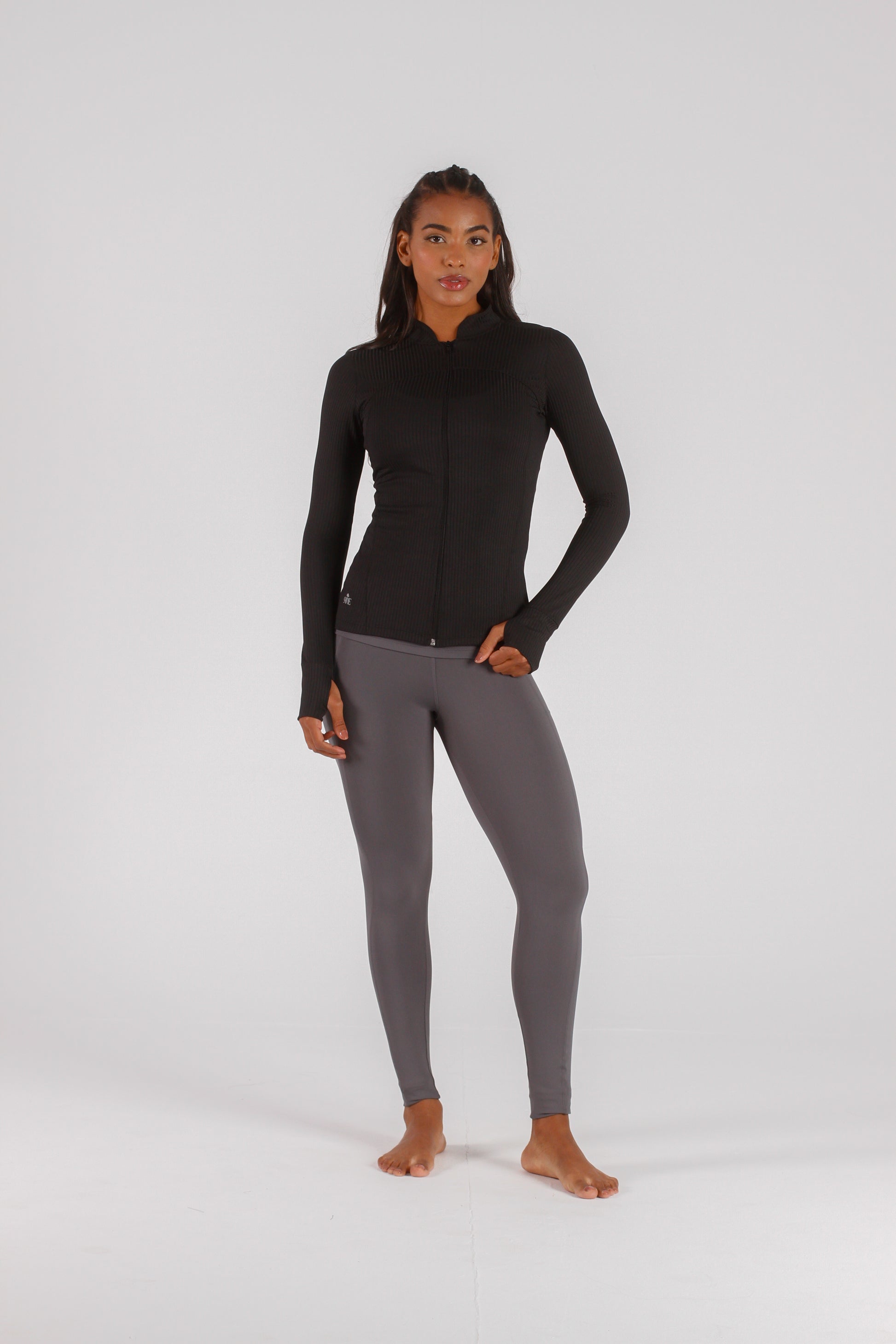 This Black Ribbed Jacket is a luxurious activewear piece with uncompromising comfort. Crafted to elegance with a full zipper and sumptuous ribbed texture, this jacket is the ultimate expression of modern athleticism. The superior quality fabric is highly breathable and lightweight, making it perfect for outdoor physical activities. It also wicks away sweat and moisture, allowing you to stay cool and dry even during an intense workout.