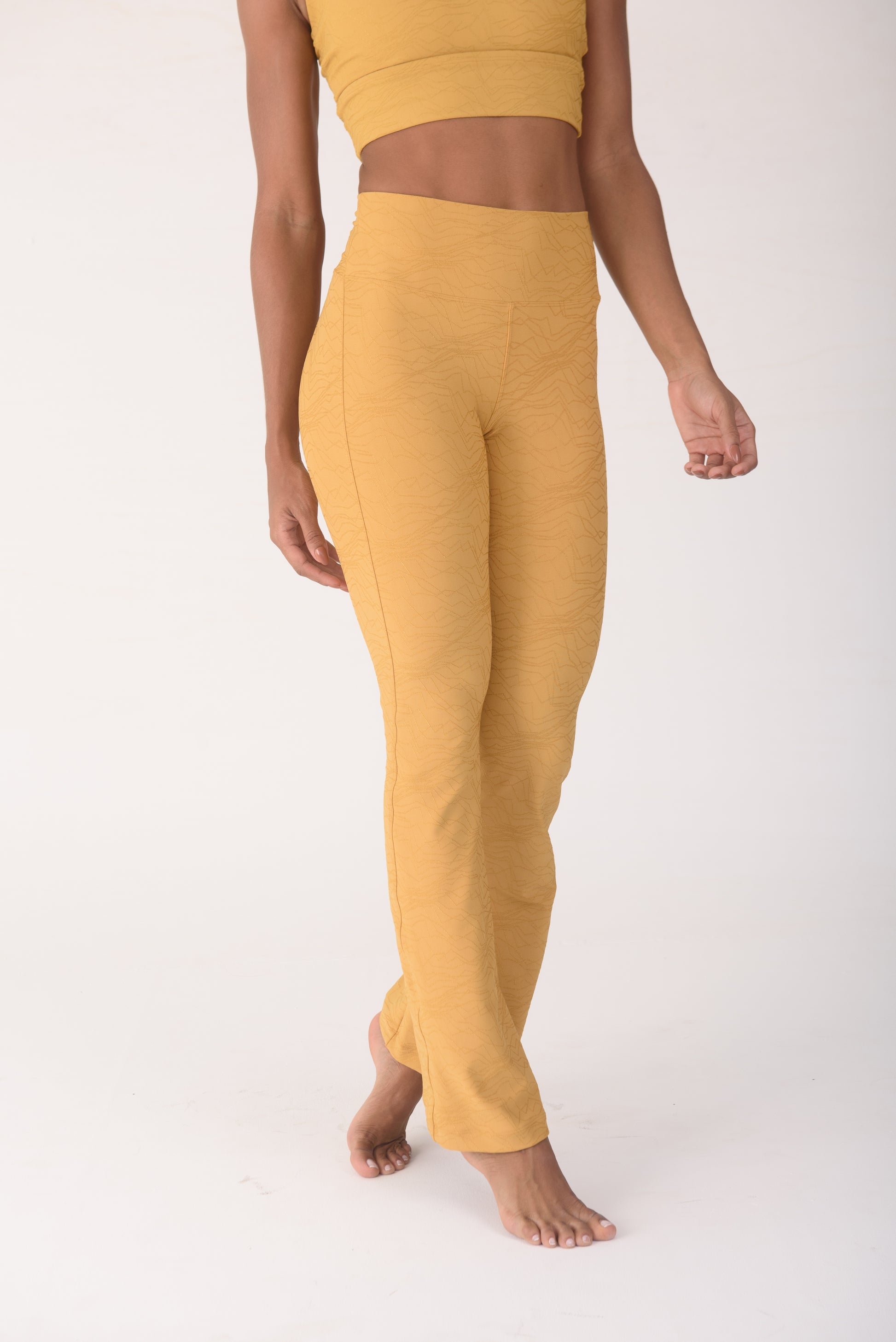 Introducing our Gold Goddess Flare Pant, the epitome of elegance and style in activewear. These pants are designed to make you feel like royalty as you move through your day. Crafted with the perfect blend of comfort and sophistication, they are the ideal choice for any occasion, whether it's a workout session or a night out on the town. With a stunning metallic finish and a flattering flare silhouette, our Gold Goddess Flare Pant is your go-to choice for adding a touch of glamour to your active lifestyle. Elevate your wardrobe with the embodiment of luxury and style – shine like the goddess you are! Shown styled with our Taty Bra.