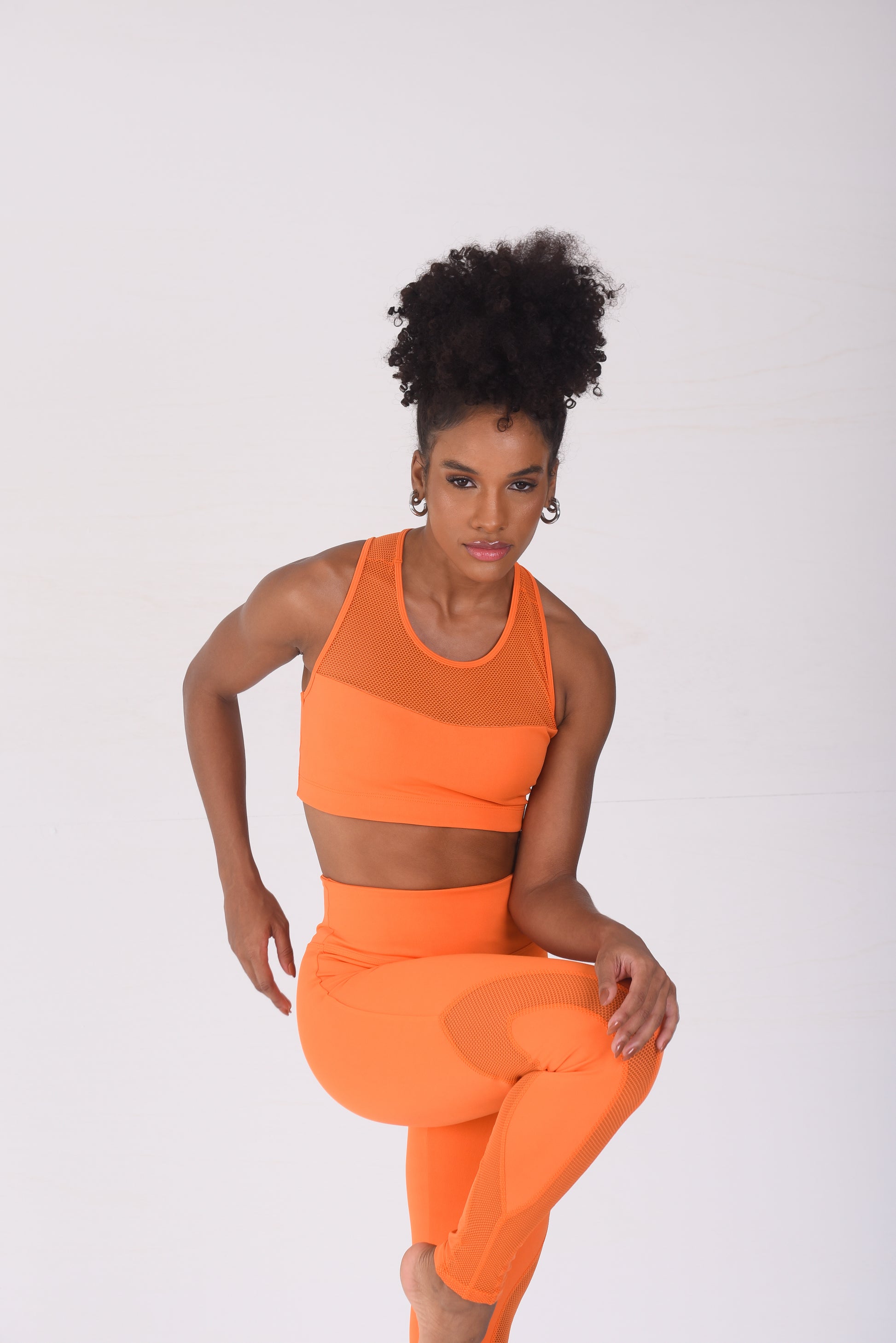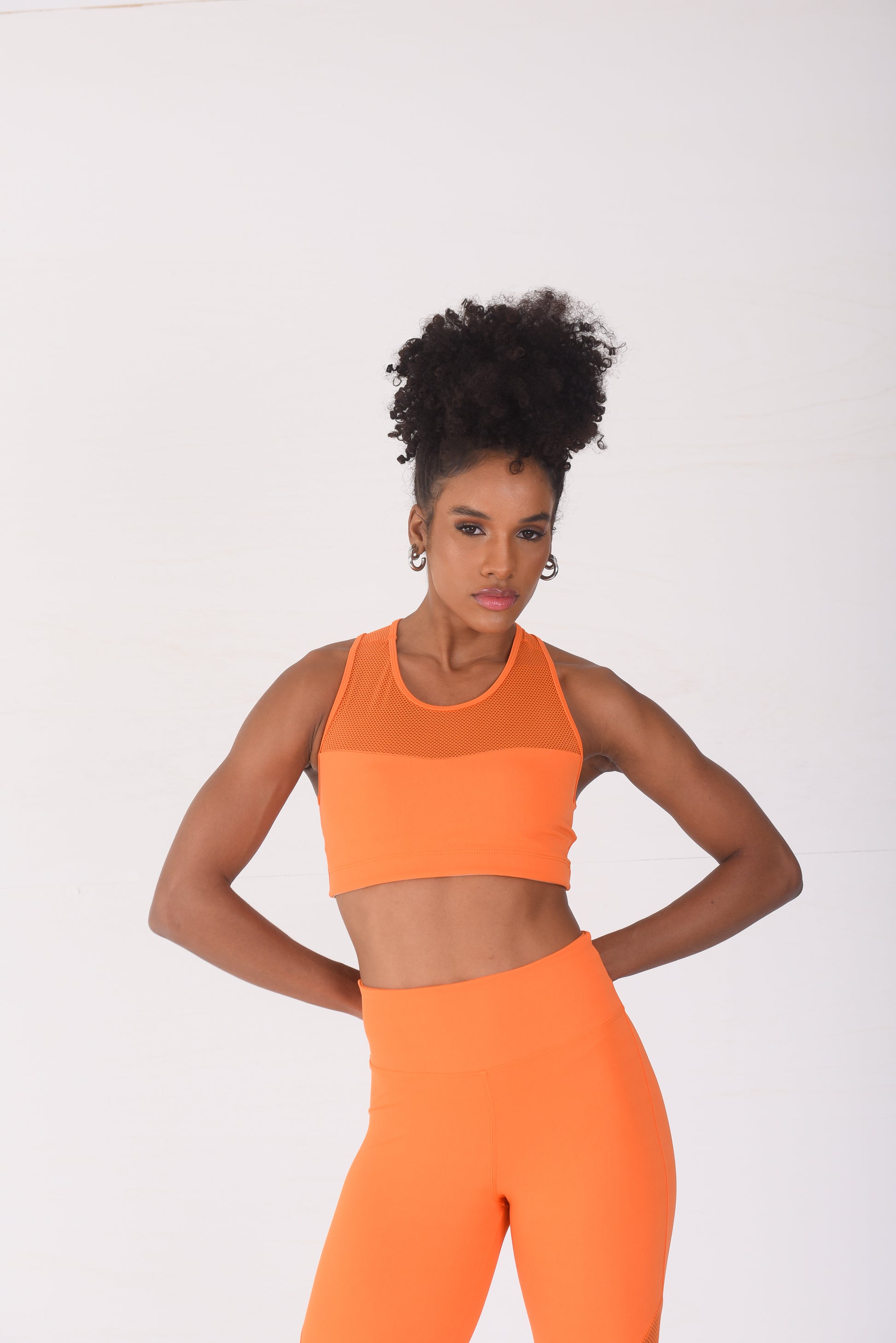 The Orange Luxe Mesh Bra provides both support and style with its intricate mesh detailing at the chest and back. Complete your perfect look with the matching pants. Made with high-quality materials, the Orange Luxe Mesh Bra offers superior support and style. The intricately designed mesh detailing on the chest and back adds a fashionable flair to your wardrobe. Pair it with the matching pants for a complete and polished look.