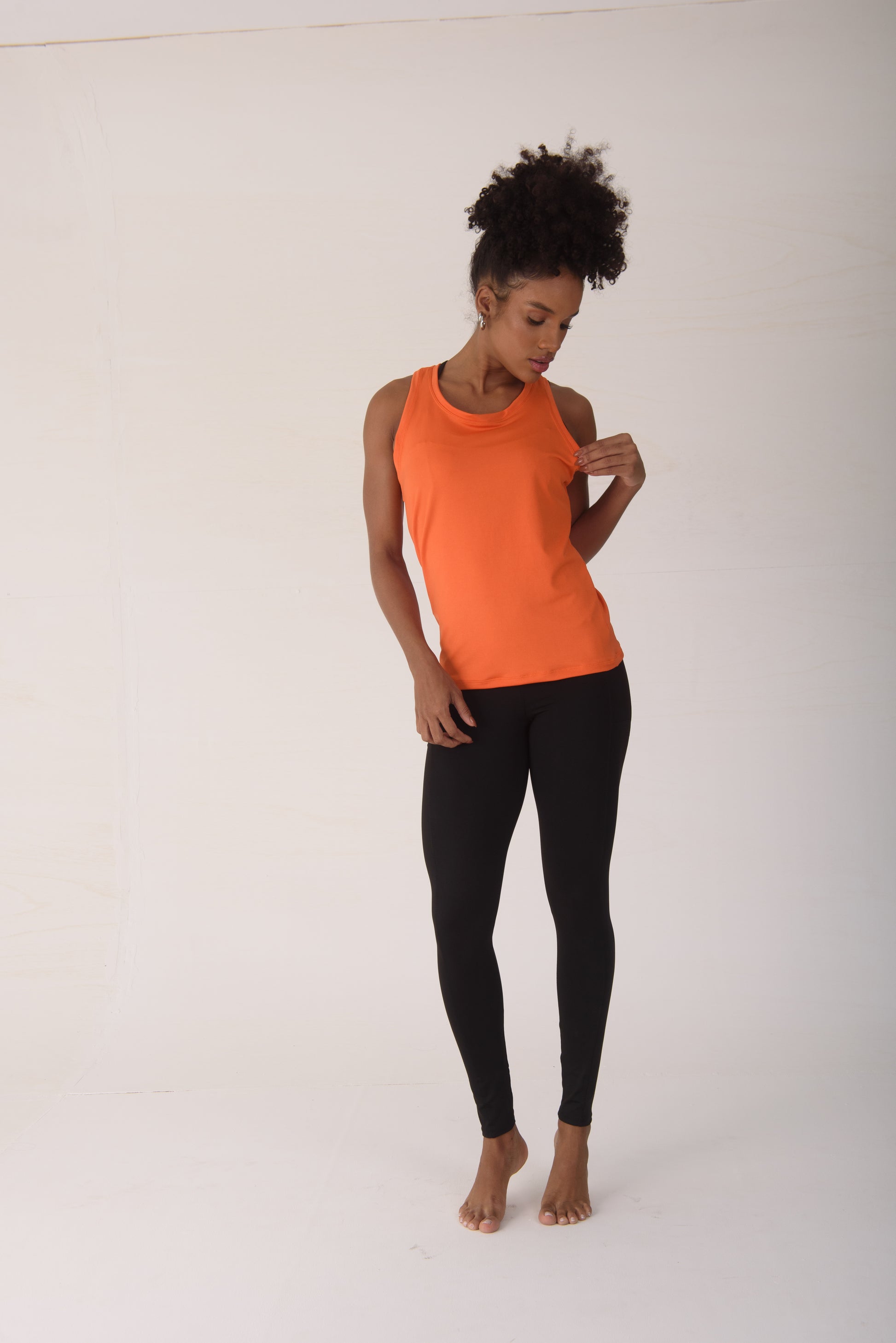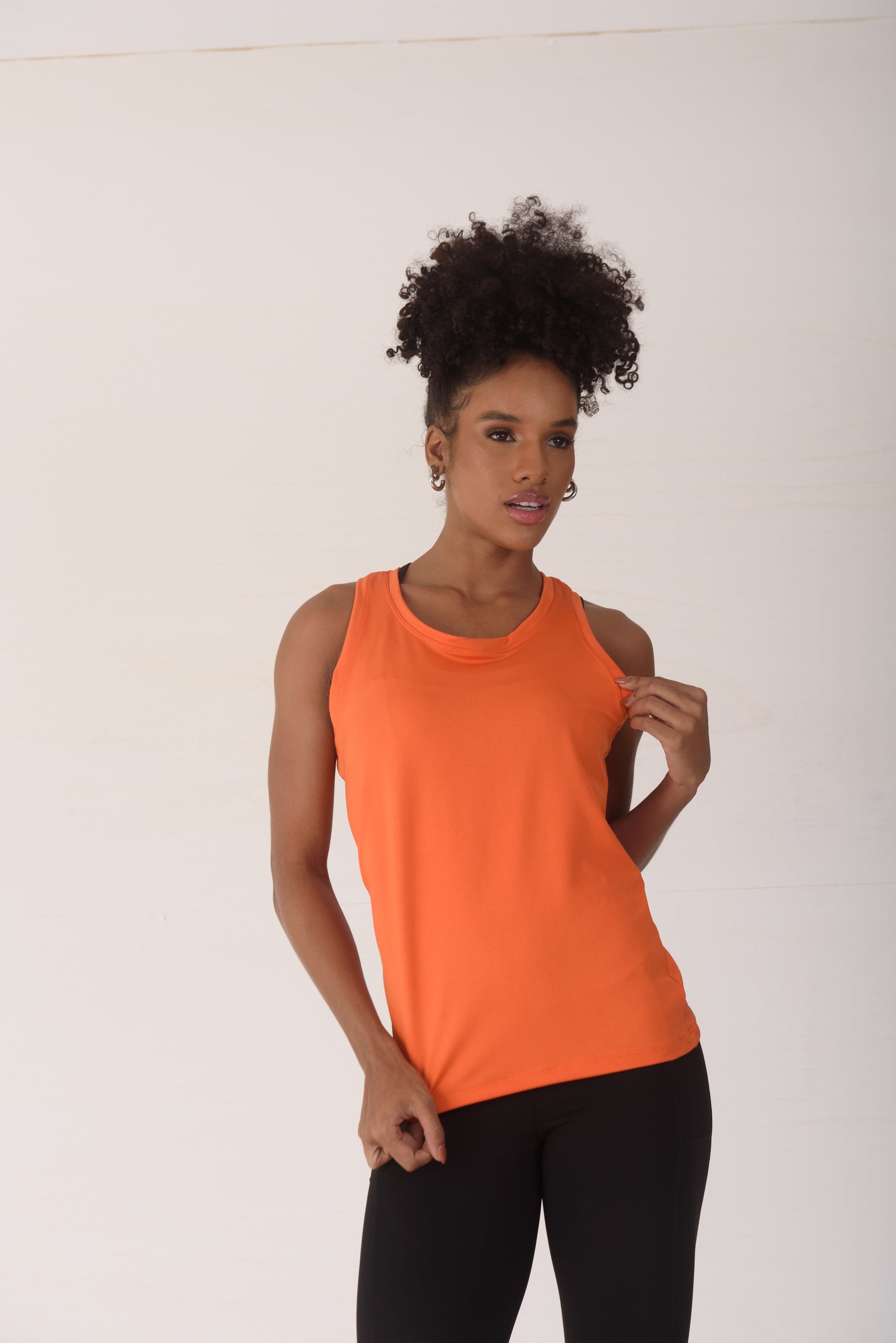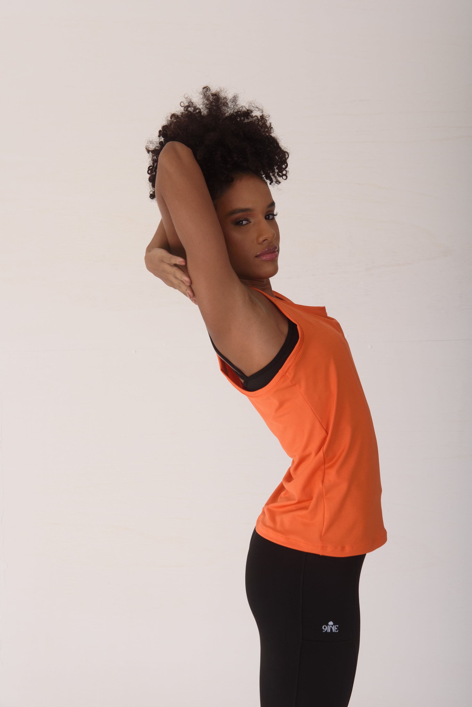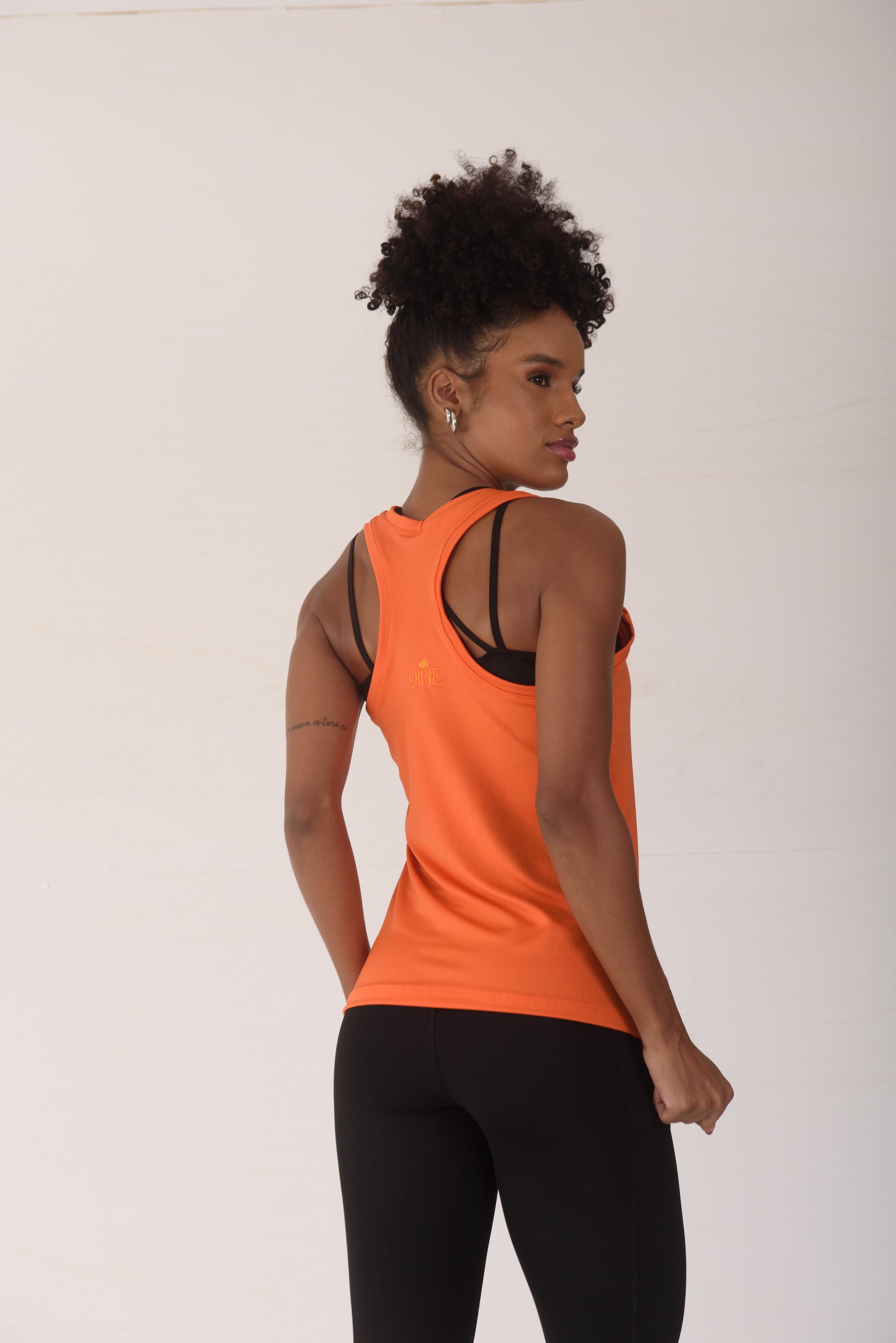 The Orange Racerback Tee is designed for comfort and breathability. It features a slim fit and modern racerback cut, perfect for wearing in or out of the gym. Whether you're exercising, lounging, or running errands, you'll stay cool and comfortable