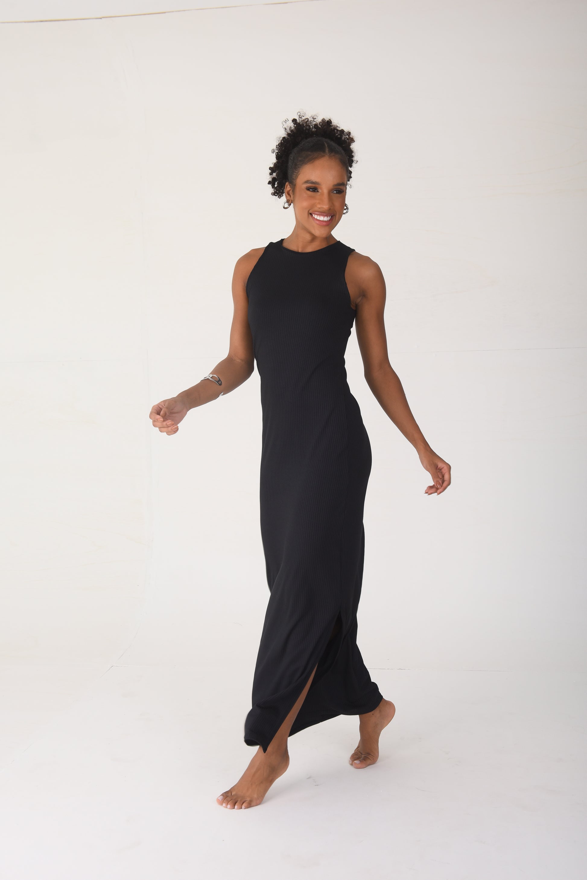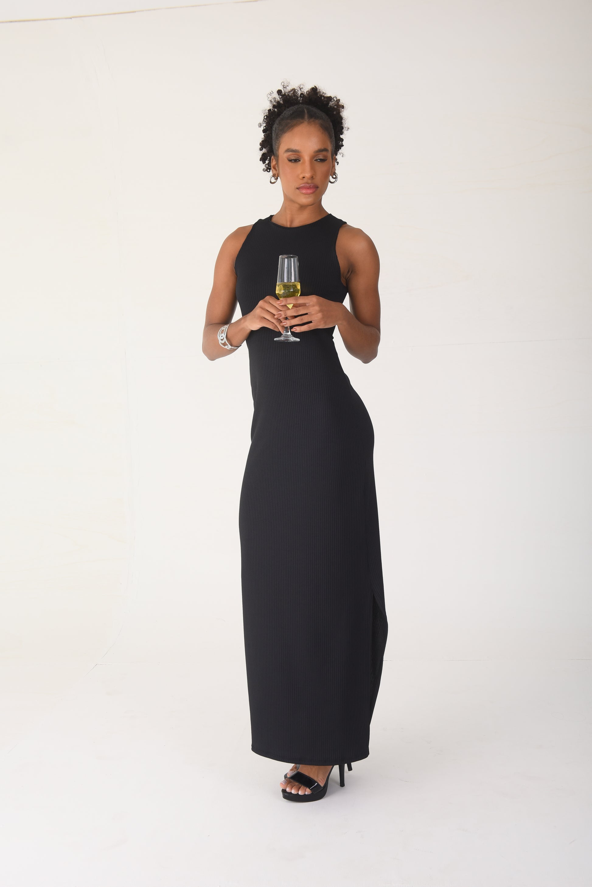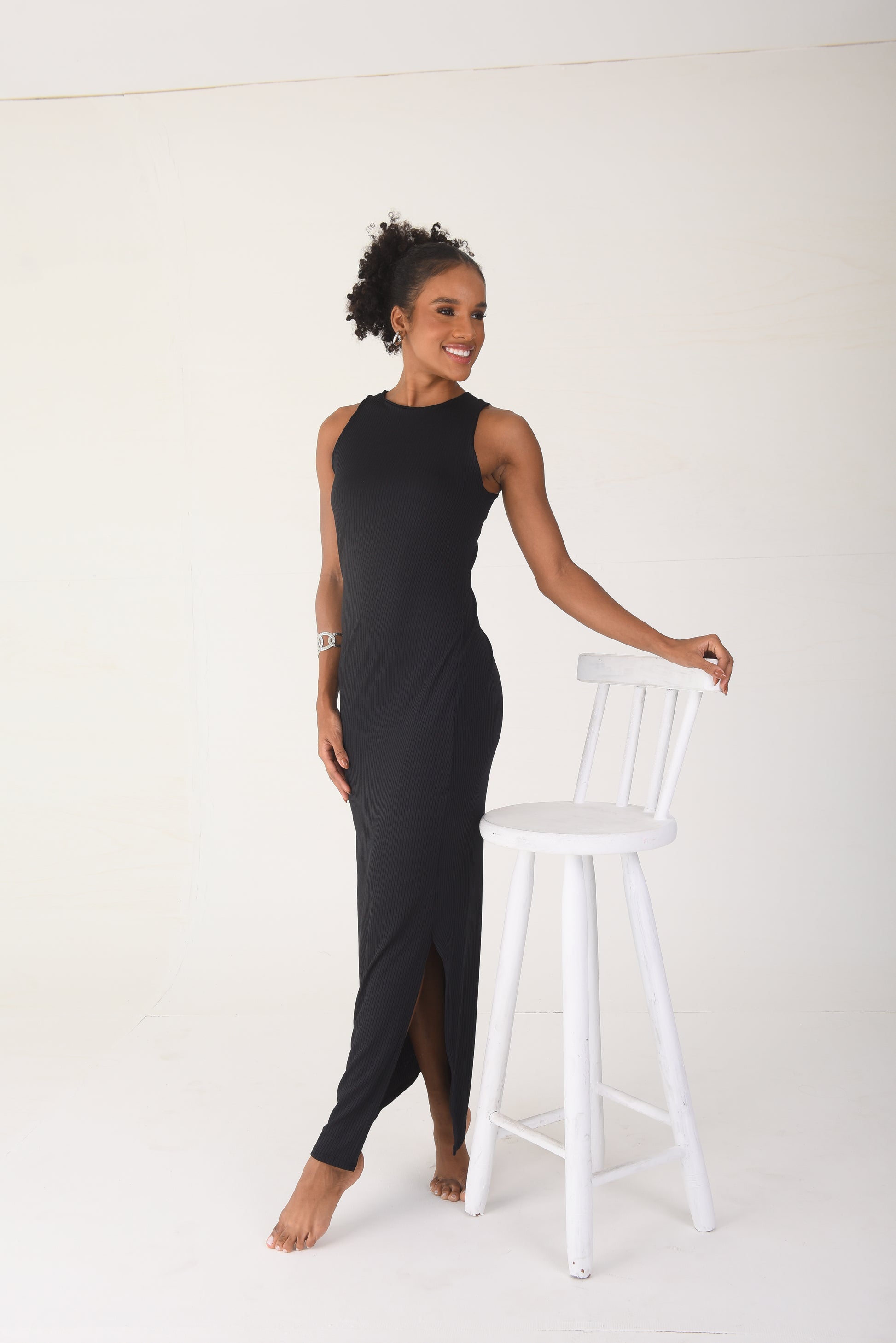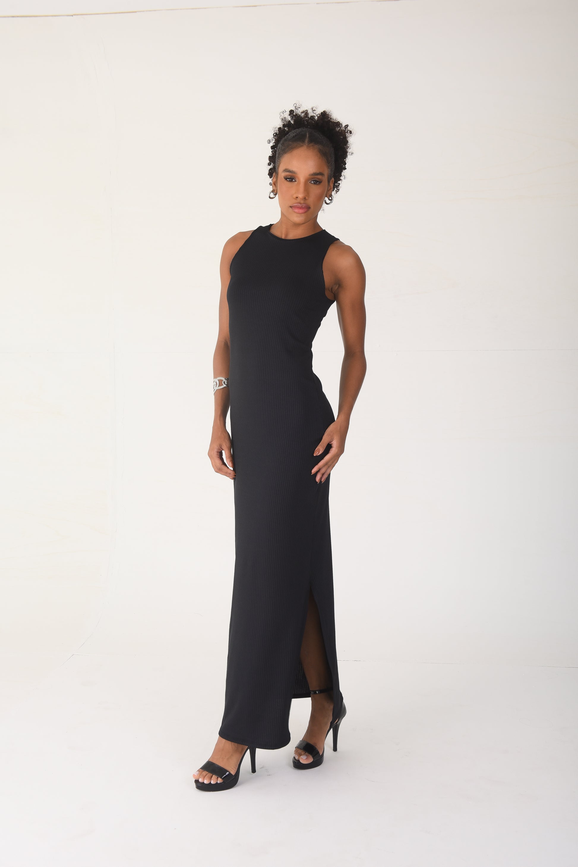 This Ribbed Maxi Dress Black offers a stylish and sophisticated look. Crafted with soft and stretchy ribbed fabric, it features an elegant floor-length silhouette that flatters the figure. The dress is easy to wear and pairs perfectly with your favorite accessories for a timeless look.